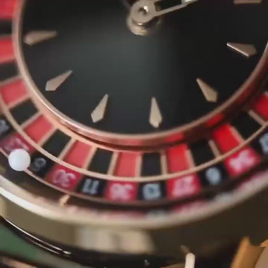 The Waleth® Roulette One captures the thrill of chance and the elegance of fine watchmaking. Designed with a bold casino-inspired bezel, this timepiece reimagines the classic roulette wheel in stunning detail, set within a polished rose gold case that exudes sophistication.